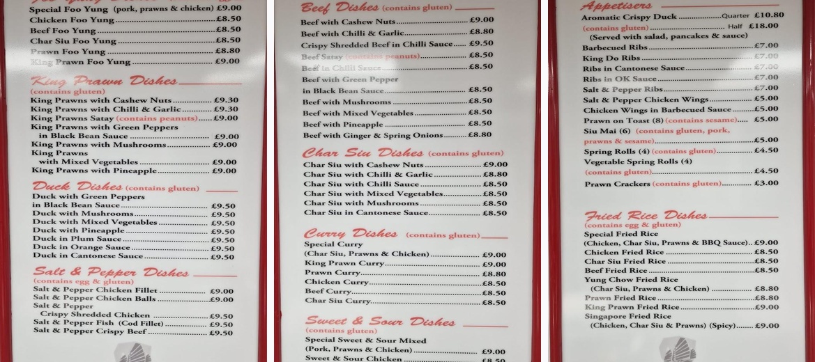 Had a lovely curry here plenty of char sui Pork, chicken and prawns in it. Nice peppery curry. Chips were nice as were the Salt and Pepper chicken balls. The 2 young ladies serving were very nice and friendly. Will defo visit again.